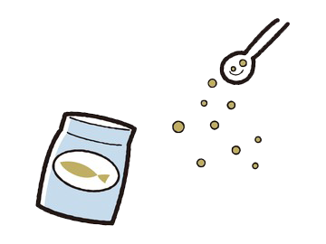 家で飼育する場合は市販の餌が便利でオススメです。1日に1~2回、3~5分位で食べきれる量を与えてください。食べ残しが出ると、それだけ早く水質も悪化しますので、食べきれる量を普段の餌やりで観察しながら調整してください。